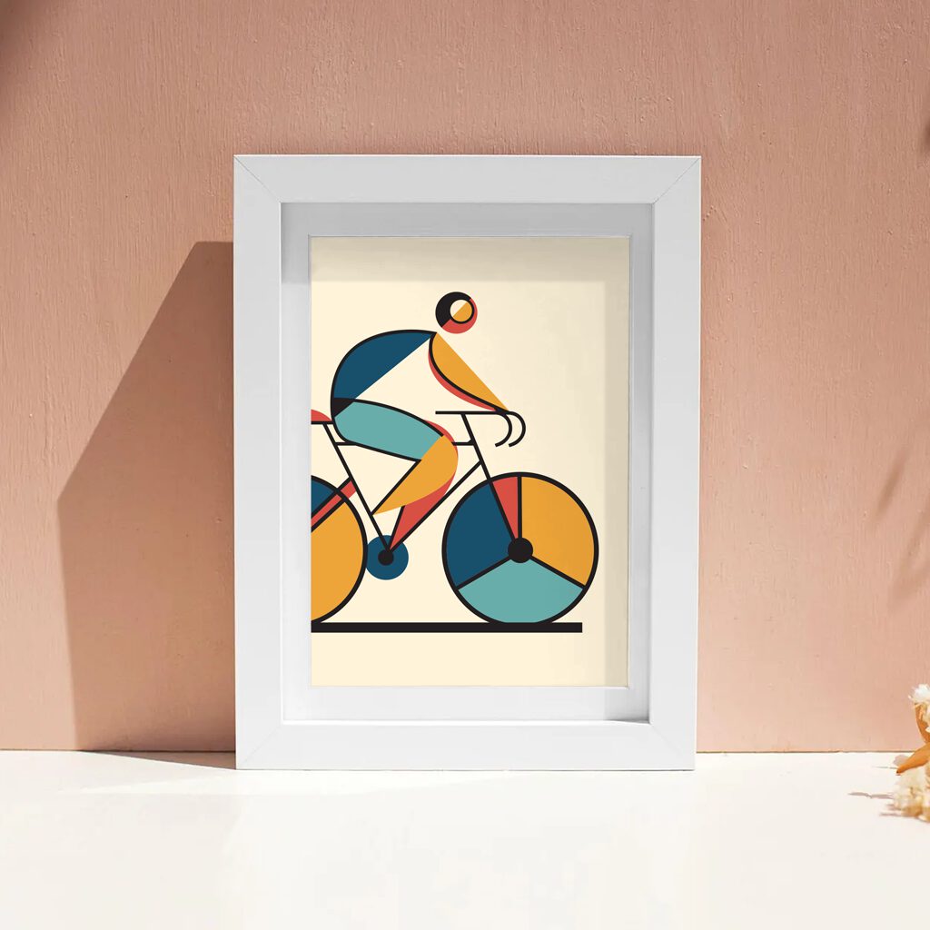 Dieses Bauhaus-inspirierte Radfahrer-Poster verbindet Bewegung, Freiheit und modernes Design zu einem ausdrucksstarken Wandbild. Die abstrakte Darstellung des Radfahrers entsteht aus klaren Linien und geometrischen Formen, die typisch für den Bauhaus-Stil sind und dem Motiv eine zeitlose, grafische Wirkung verleihen. Die harmonisch aufeinander abgestimmten Farben sorgen für Dynamik und Leichtigkeit, während der helle Hintergrund dem Poster eine ruhige, elegante Basis gibt. Das Motiv steht sinnbildlich für Aktivität, Balance und den bewussten Genuss von Bewegung im Alltag. Besonders schön fügt sich dieses Poster in moderne, minimalistische, skandinavische oder kreative Wohnräume ein – ob im Wohnzimmer, Büro, Flur oder Fitnessbereich.