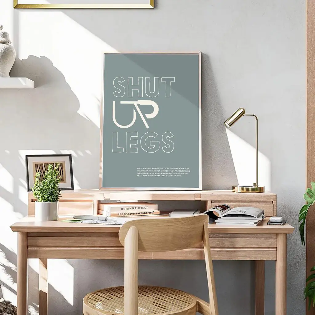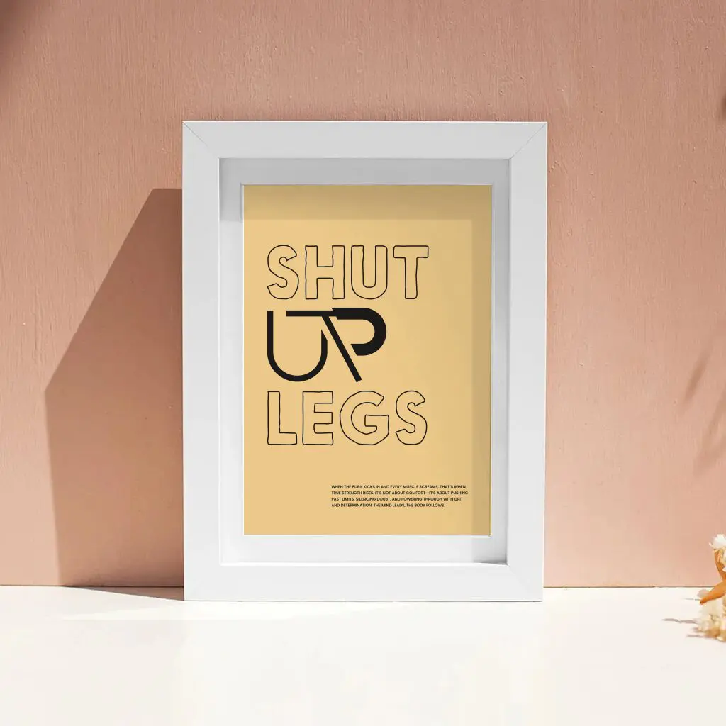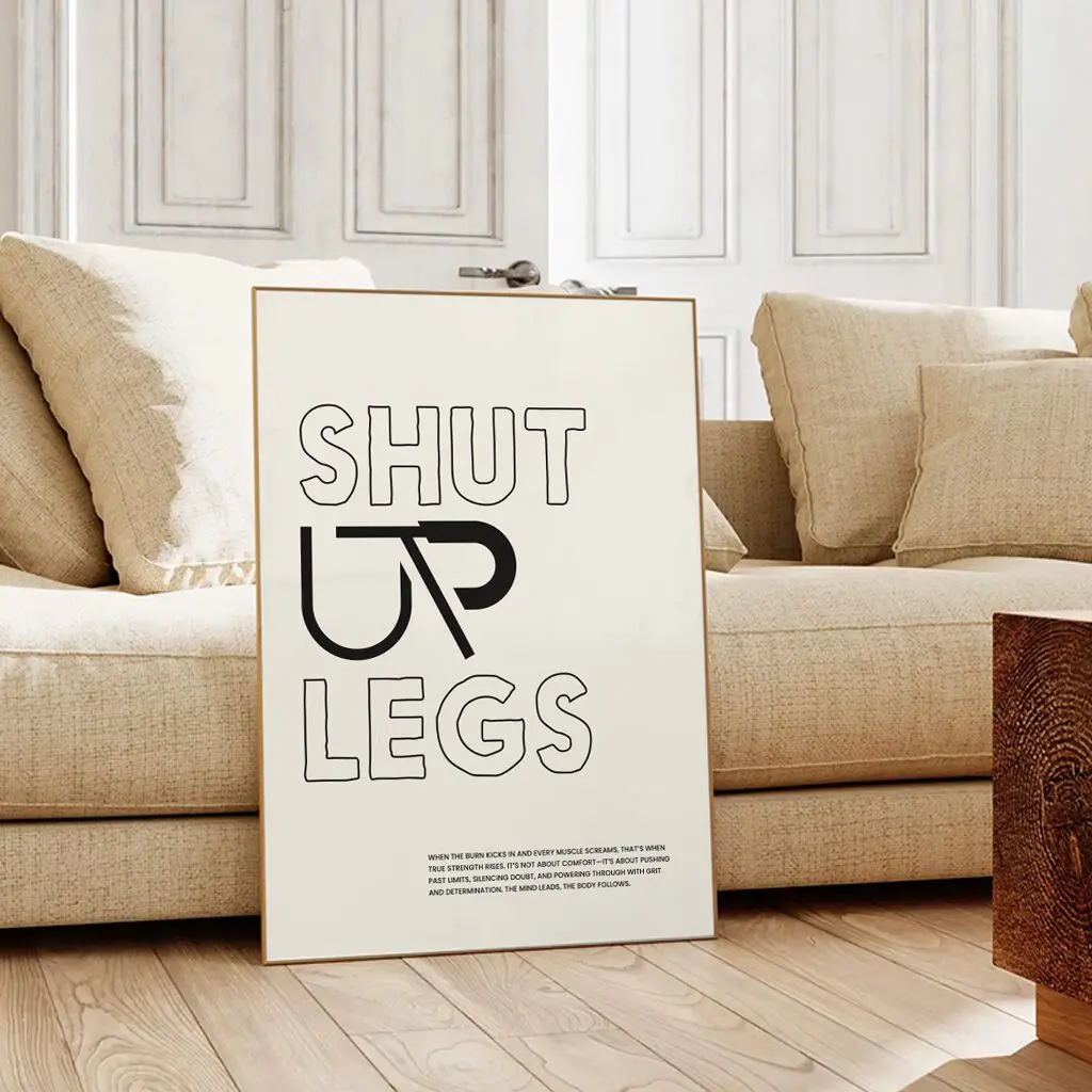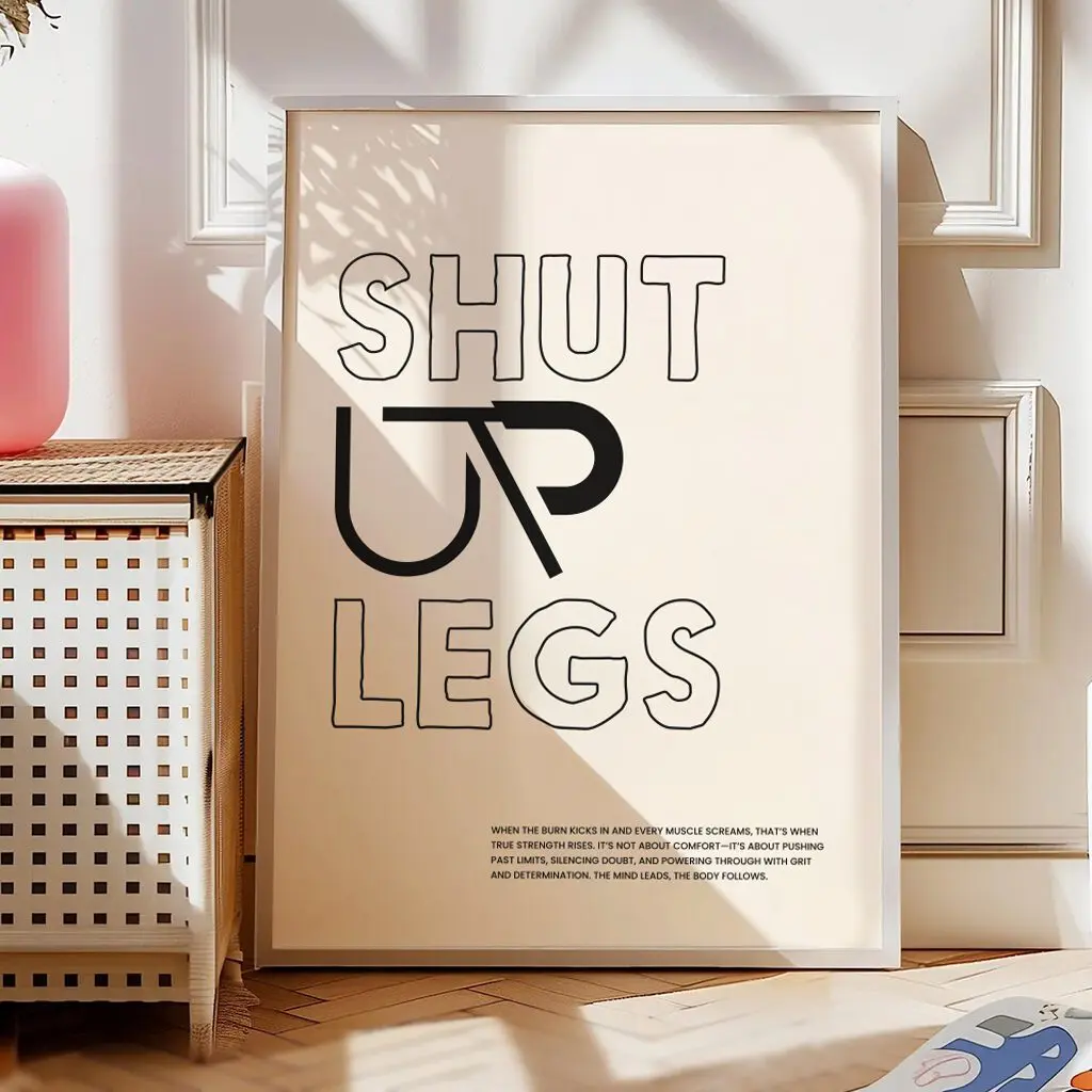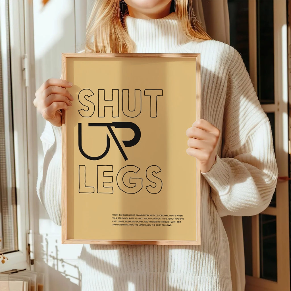 Ob im Wohnzimmer, Home Office oder Trainingsbereich – „Shut Up Legs“ ist ein stilvoller Blickfang, der Kraft und Motivation ausstrahlt.