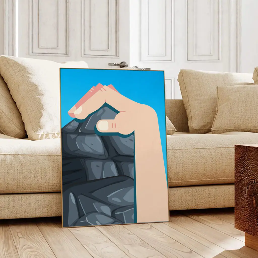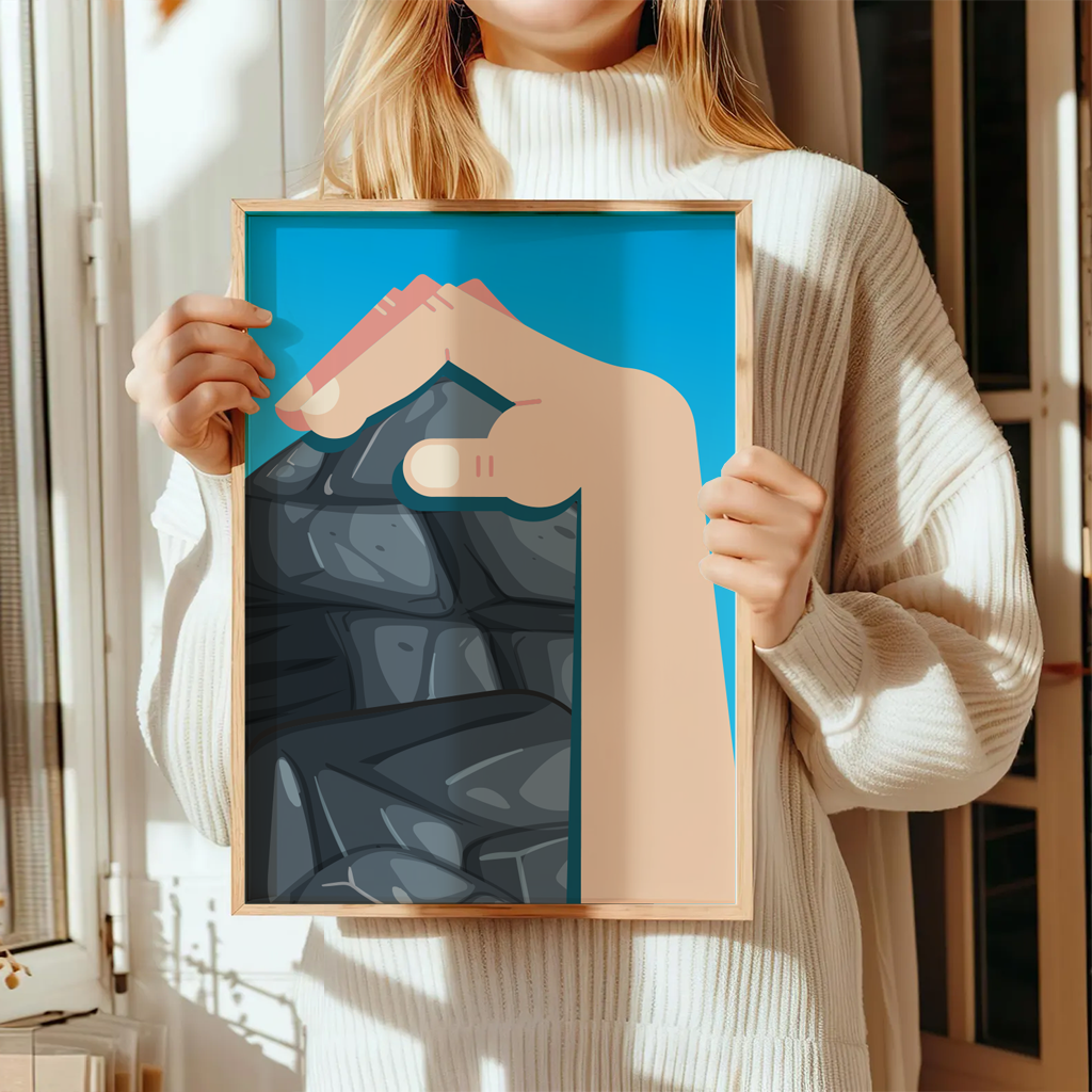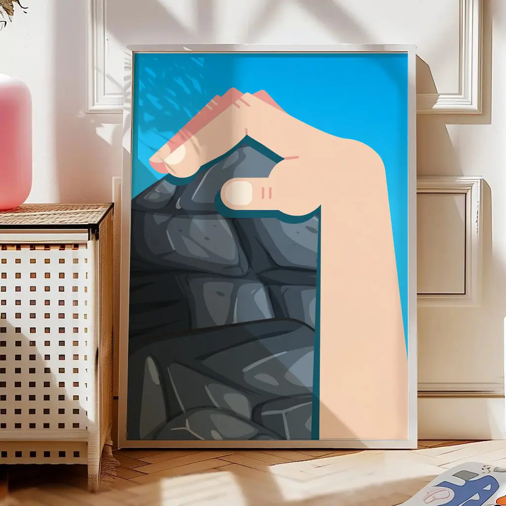 Dieses minimalistische Klettern Poster zeigt den entscheidenden Augenblick am Fels: eine Hand, die sich präzise an einer Kante festkrallt. Das Motiv steht für Kontrolle, Technik und innere Ruhe – Eigenschaften, die beim Klettern den Unterschied machen.