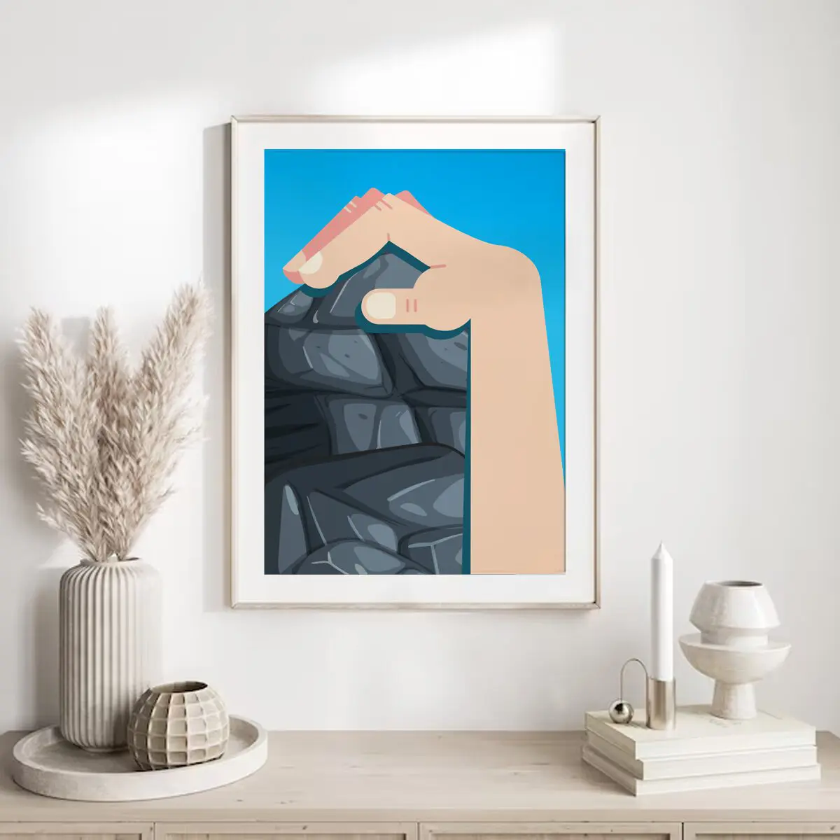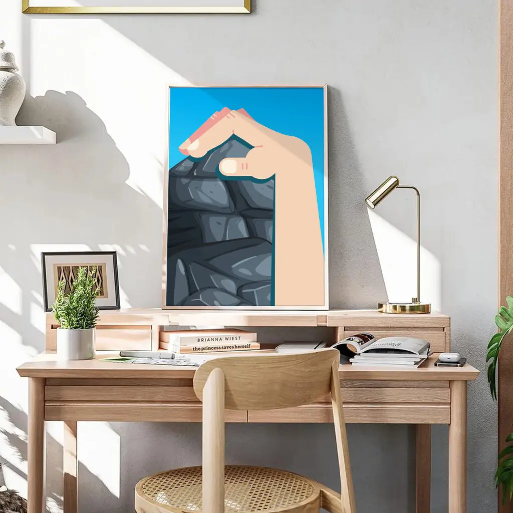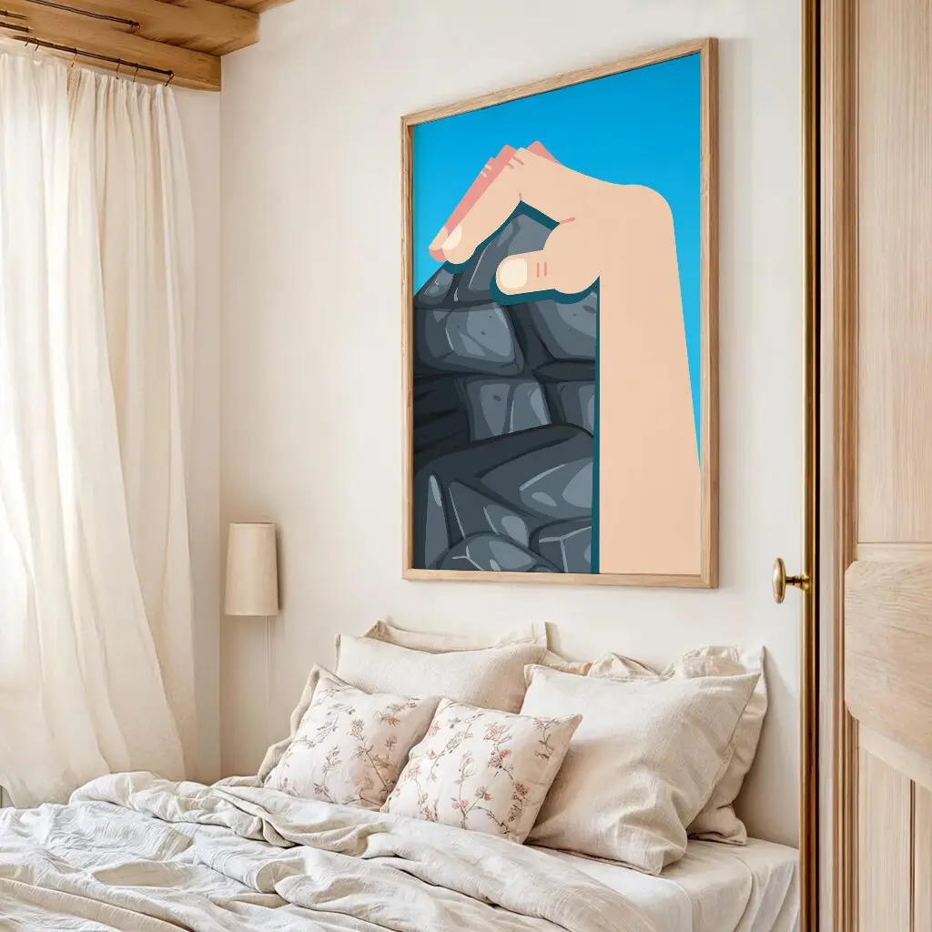 Dieses minimalistische Klettern Poster zeigt den entscheidenden Augenblick am Fels: eine Hand, die sich präzise an einer Kante festkrallt. Das Motiv steht für Kontrolle, Technik und innere Ruhe – Eigenschaften, die beim Klettern den Unterschied machen.