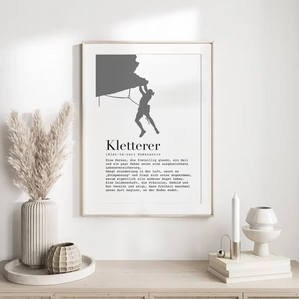 Die reduzierte Silhouette und die klare Typografie machen dieses Poster zu einem ruhigen, aber ausdrucksstarken Statement für echte Kletterbegeisterte.