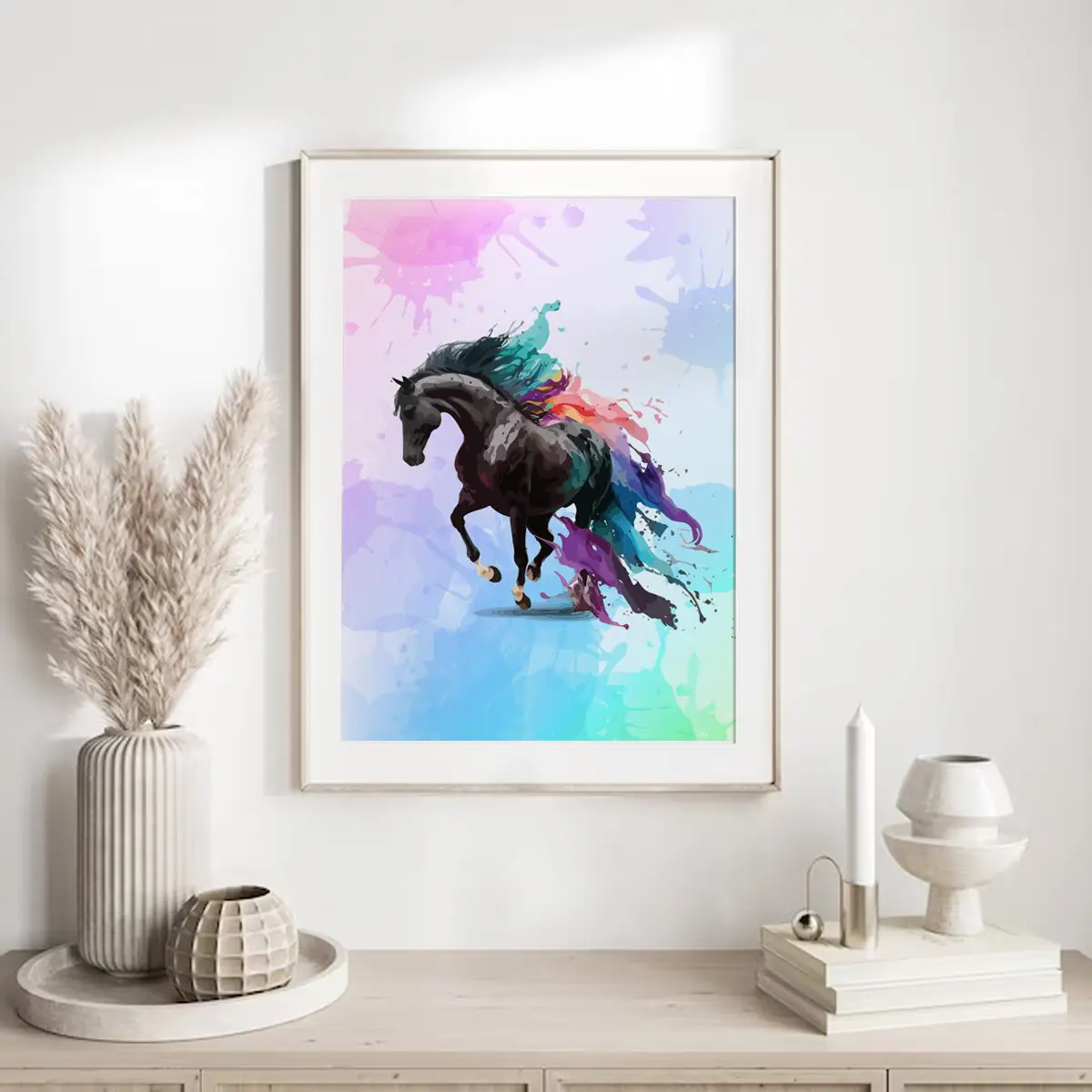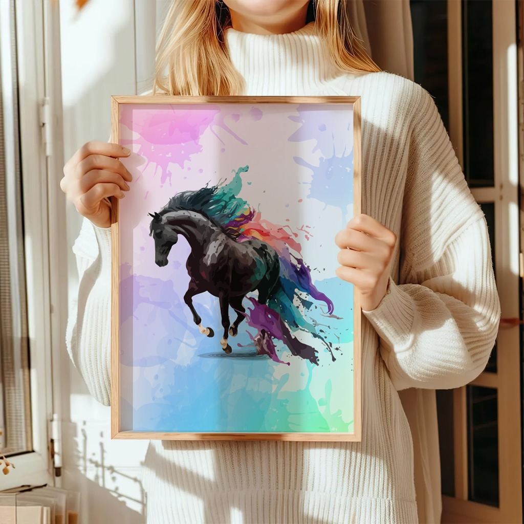 Das Pferd wirkt dynamisch und frei, während die fließenden Farbverläufe Energie und Emotion transportieren. Color in Motion steht für Freiheit, Ausdruck und den Mut, sich nicht einordnen zu lassen.