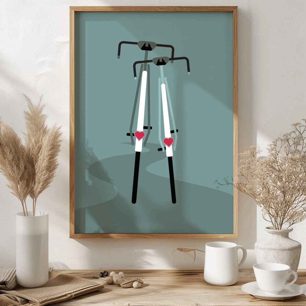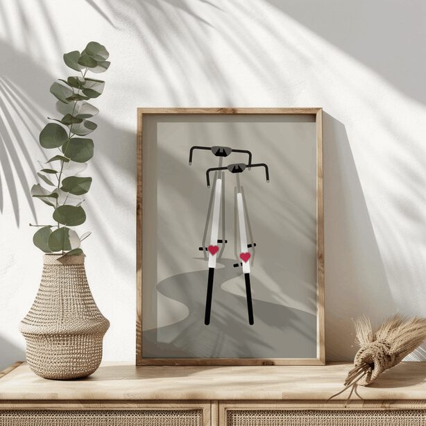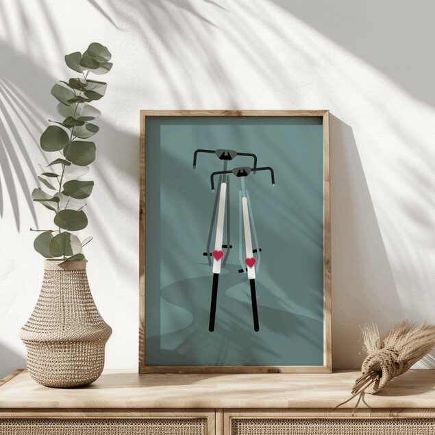 Bringe die Magie der Fahrrad-Liebe in dein Zuhause und lasse dieses Poster zu einem Ausdruck deiner eigenen Leidenschaft für das Radfahren werden. Bestelle noch heute und tauche ein in die faszinierende Welt der pedalgetriebenen Freundschaft.