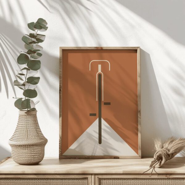 Unsere Fahrrad-Illustration ist eine wahre Hommage an die Schönheit des Zweirads. Dieses minimalistische Wandbild wird ohne Rahmen geliefert und ermöglicht es dir, deine eigenen kreativen Gestaltungsideen zu verwirklichen.