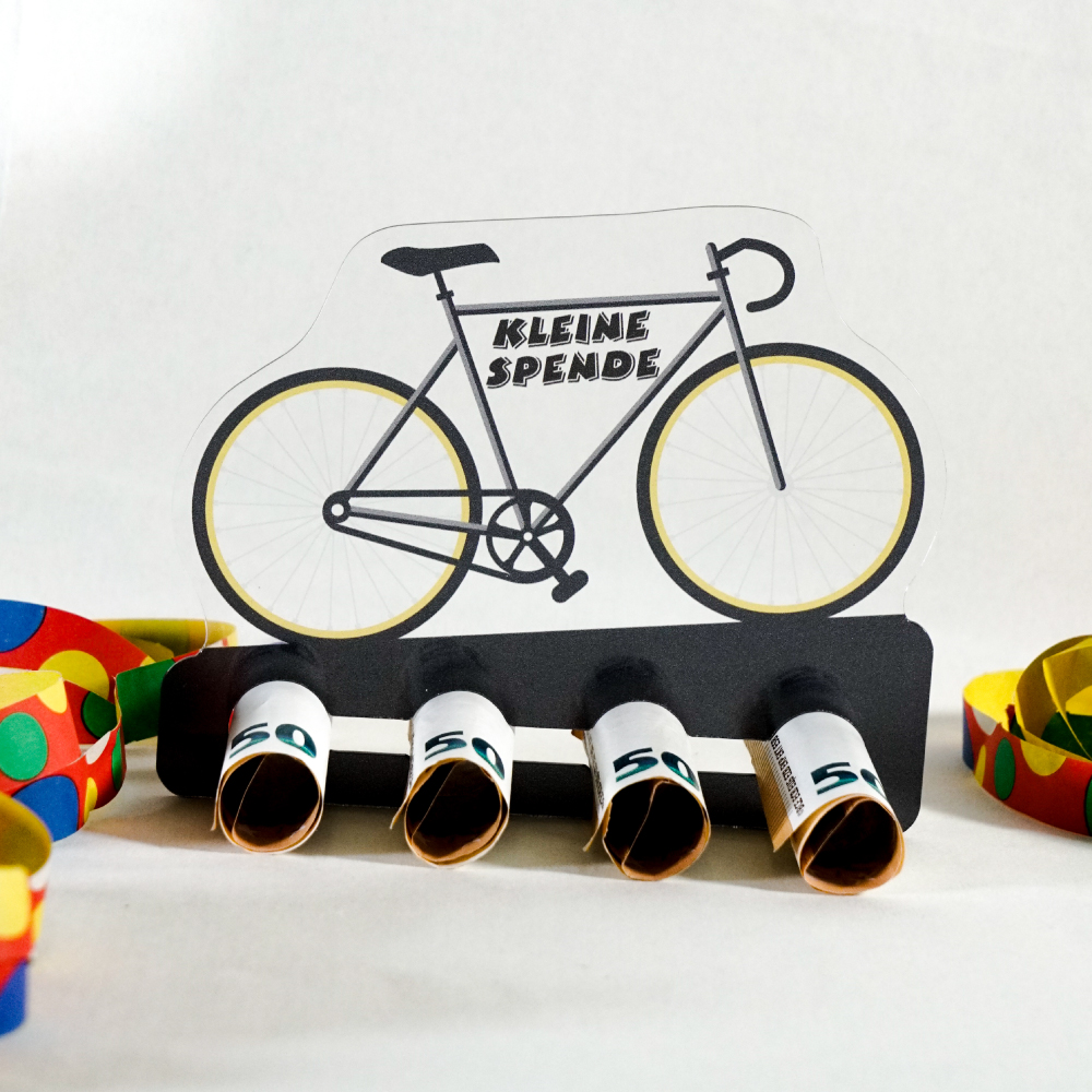 Rennrad Motiv mit dem Schriftzug “Kleine Spende”