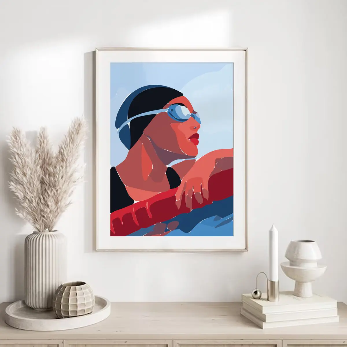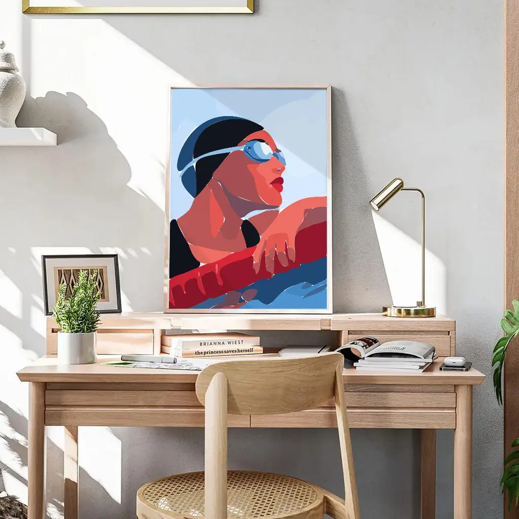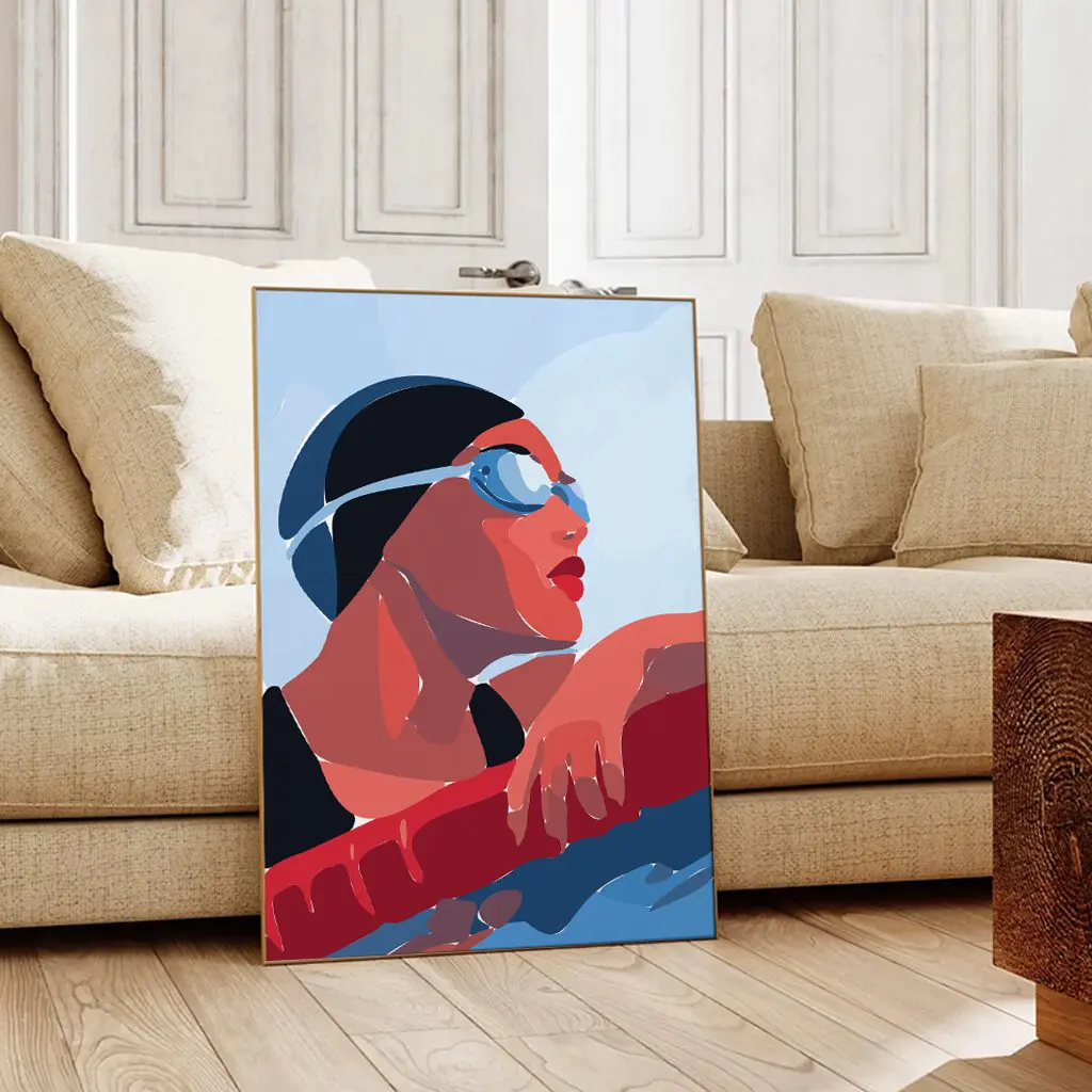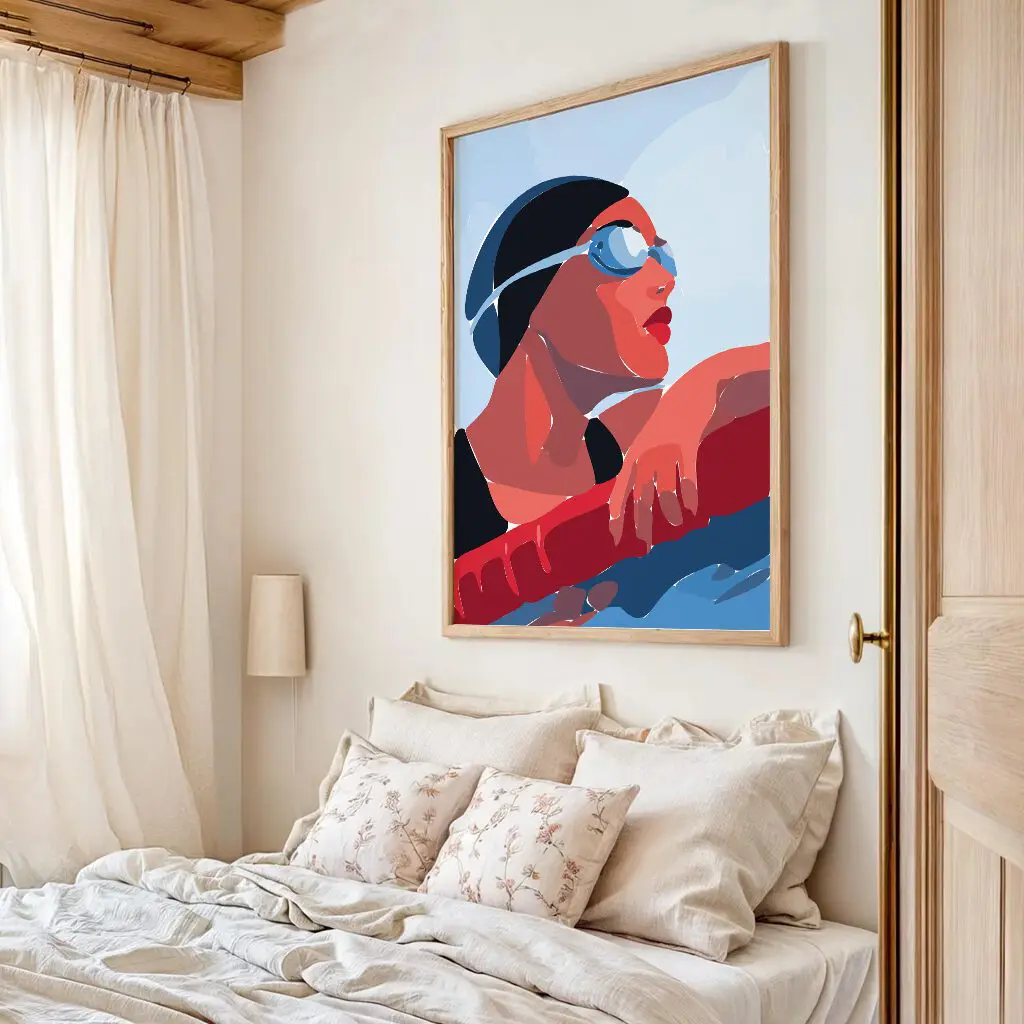 Dieses moderne Schwimm-Poster fängt einen ruhigen, aber kraftvollen Moment am Beckenrand ein. Der Fokus liegt auf Konzentration, Atemkontrolle und mentaler Stärke – genau dort, wo Training und Wettkampf entschieden werden. Die reduzierte, illustrative Formsprache und die harmonische Farbkomposition machen dieses Motiv zu einem starken Blickfang für Sportler, Schwimmvereine oder moderne Wohnräume mit sportlichem Charakter.