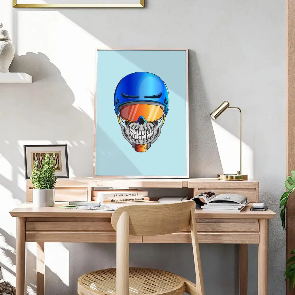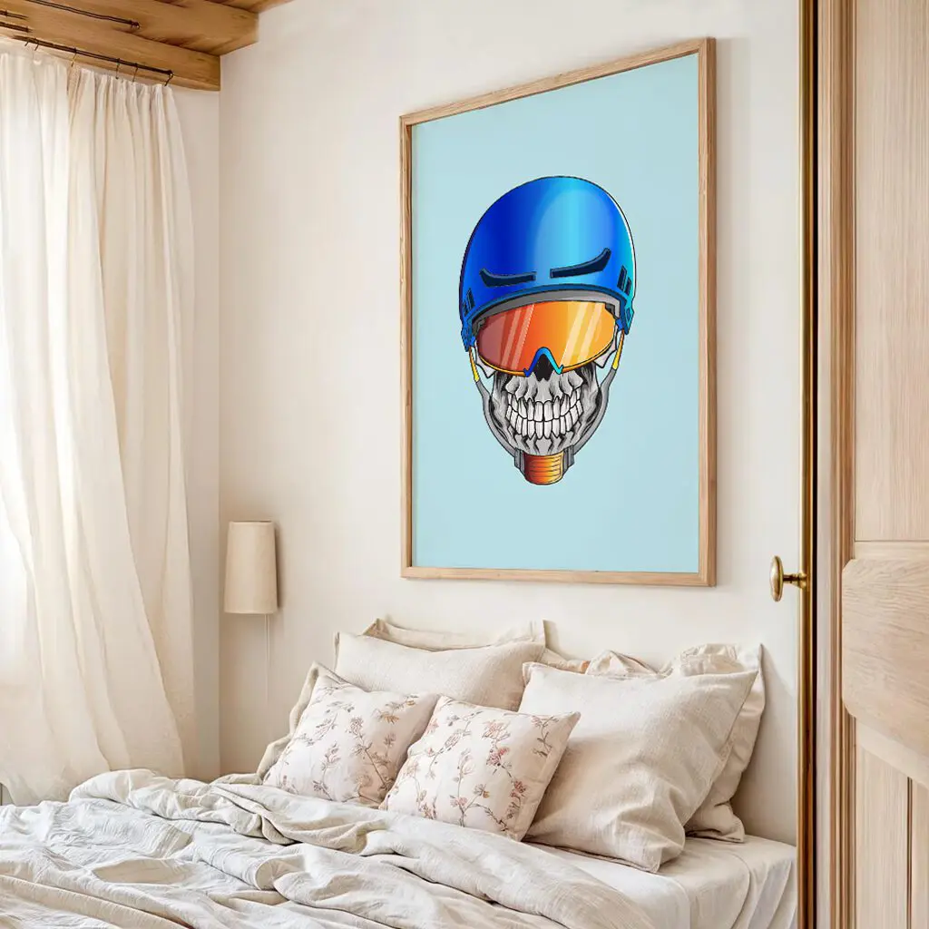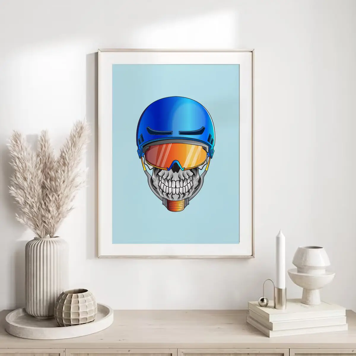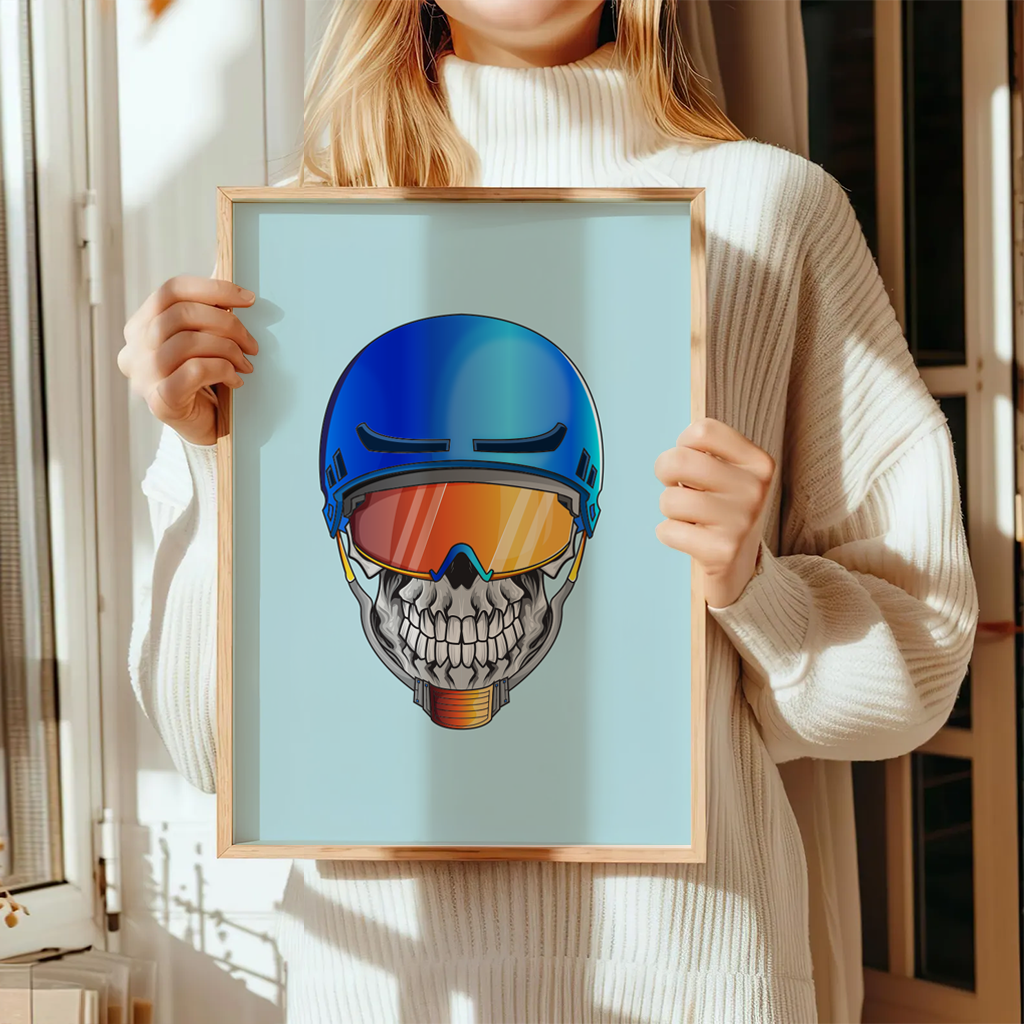 Dieses ausdrucksstarke Ski Poster verbindet Urban Art mit Wintersport-Ästhetik. Der markante Totenkopf mit Skihelm und verspiegelter Skibrille steht für Mut, Geschwindigkeit und kompromisslose Freiheit auf der Piste. Die klaren Linien und starken Kontraste machen das Motiv zu einem echten Statement-Piece für moderne Wohnräume, Büros oder Sportbereiche. Ideal für Skifahrer, Freeride-Fans und alle, die kraftvolle Ski Poster mit Charakter lieben.