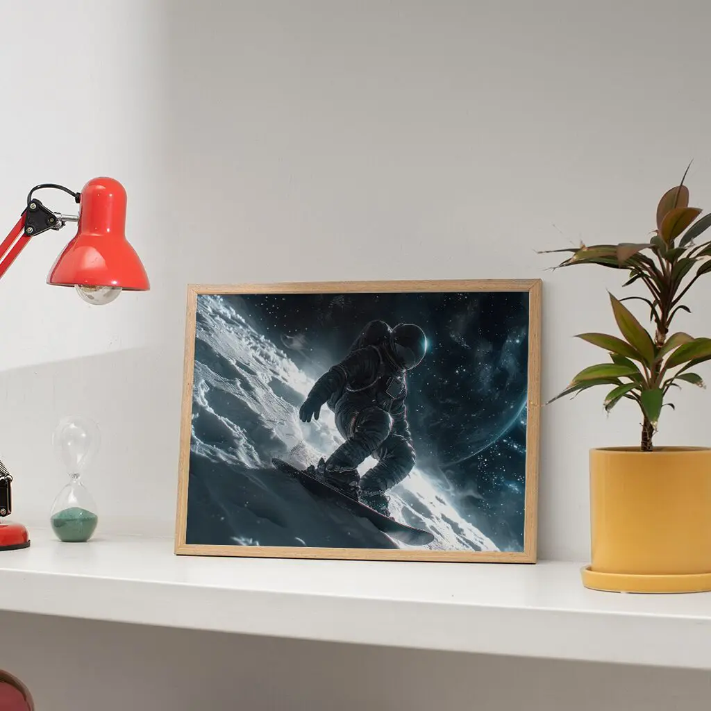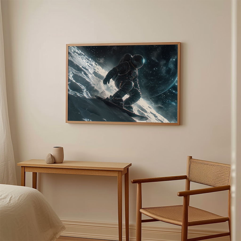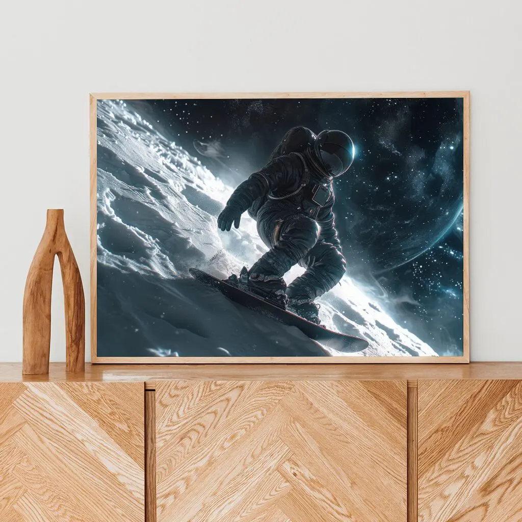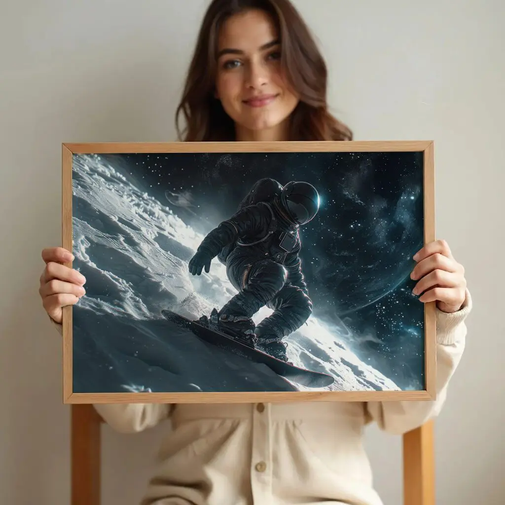 Die besondere Bildkomposition macht „Cosmic Ride“ zu einem echten Statement-Piece – ideal für alle, die das Außergewöhnliche suchen und ihre Leidenschaft für Snowboarden mit einem futuristischen Stil verbinden möchten.