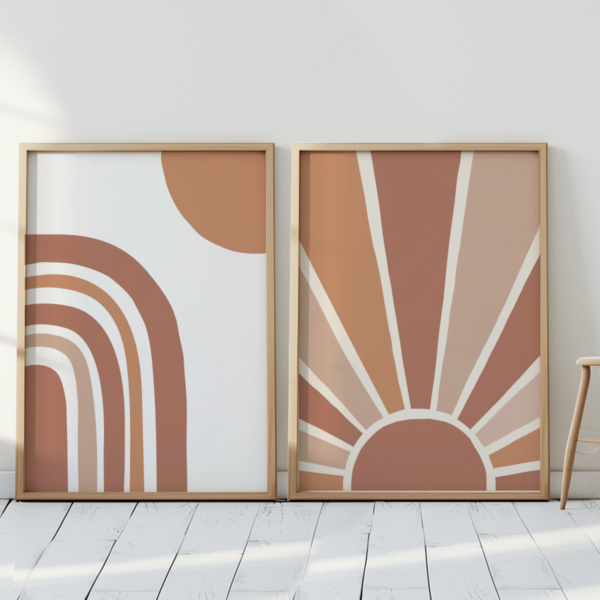 Modern Boho Wandbild 2-teilig – „Rays & Rainbows“