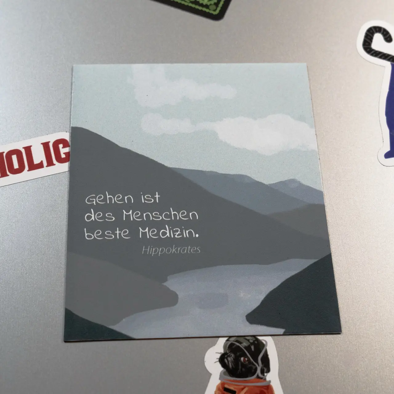 Der Magnet mit dem Spruch „Gehen ist des Menschen beste Medizin“ von Hippokrates bringt eine der ältesten, aber immer noch wahrsten Erkenntnisse der Menschheit auf den Punkt. Seit Jahrhunderten nutzen Menschen das Gehen nicht nur als Fortbewegungsart, sondern als sanftes Heilmittel für Körper, Geist und Seele. Dieser Magnet erinnert täglich daran, wie wohltuend und kraftvoll ein einfacher Spaziergang sein kann – egal, ob durch einen Wald, entlang eines Sees, durch die Berge oder einfach durch die eigene Nachbarschaft.
