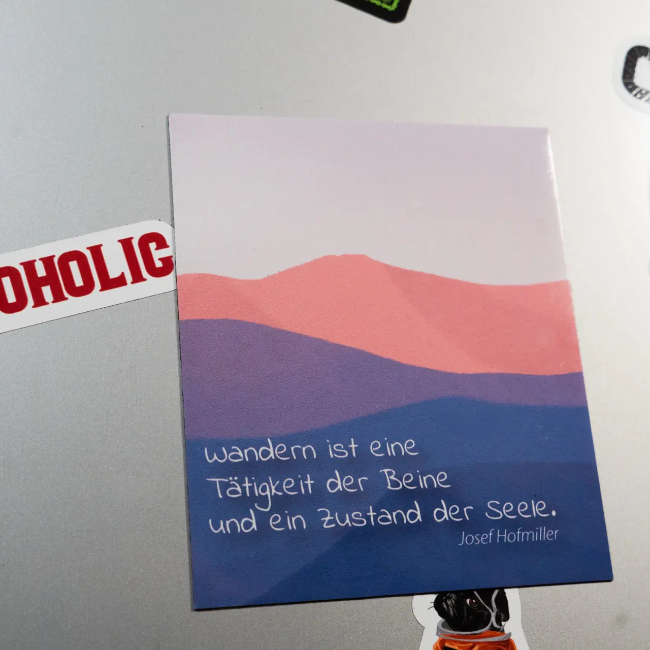 Der Magnet mit dem Spruch „Wandern ist eine Tätigkeit der Beine und ein Zustand der Seele“ von Josef Hofmiller trägt eine Botschaft in sich, die tief in die Naturverbundenheit hineingreift. Wandern ist nicht nur ein Hobby, keine sportliche Aktivität, die man nebenbei abhakt – es ist eine bewusste Erfahrung, die den Körper bewegt und gleichzeitig die Seele berührt. Dieser Magnet fängt genau dieses Gefühl ein und erinnert im Alltag daran, wie wichtig es ist, sich regelmäßig Zeit für sich selbst und die Natur zu nehmen.